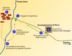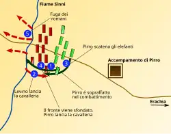 ![]() Pyrrhos von Epirus landet bei Tarent und besiegt die Römer in der Schlacht von Heraclea. | |