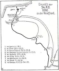 - Ernst Reinhardt: Die 54. (württ.) Reserve-Division im Weltkriege 1914–18 (Württembergs Heer im Weltkrieg, Heft 7), Bergers Literar. Büro und Verlagsanstalt, Stuttgart 1934