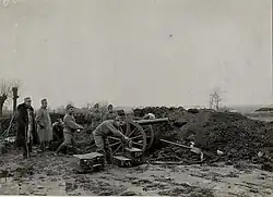 Nach dem Ausbruch des Ersten Weltkrieges wurde viele Geschütze mit einem Schild ausgerüstet. Damit sollte die Bedienmannschaft von Beschuss durch Handwaffen und Splittern geschützt werden.[1]