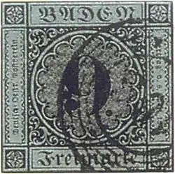 - ↑ a b c A. Joerger: Der klassische Baden-Fehldruck. In: Rundschreiben Nr. 21/1956 der Arbeitsgemeinschaft der Baden-Spezialsammler im Bunde Deutscher Philatelisten e.V. Karlsruhe 1956, S. 1–4, Digitalisat.