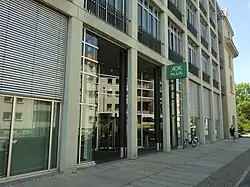 Das viergeschossige Gebäude ist ein Stahlbetonbau und hat eine „kompakte Kubatur“, die von „großen Formen von ausgebautem Mansardgeschoss, Kolossalpilastern und Fensterbrüstungen“ gegliedert werden. „Die Geschlossenheit, Einheitlichkeit sowie die Homogenität der Fassade untermauern die Statik des Bauwerks.“[1] Zwei große Figuren aus Tuffstein flankieren zu beiden Seiten das Portal: Stillende Mutter auf der einen Seite und Arbeiter auf der anderen Seite. Das Portal ist geteilt, zwischen beiden Türen befindet sich eine überlebensgroße Atlasfigur. Alle drei Figuren wurden von Selmar Werner geschaffen. Sie „ergänzen in ihrer monumentalen Formensprache den massiven und trutzigen Burgcharakter dieses Gebäudes“.[1] Von Georg Türke stammen die Figuren am vierten Obergeschoss, die paarweise angeordnet sind in Steinguss: Arbeiter, Tischler, Bäcker, Maurer, Schlosser, Schmied, Steinmetz und Zimmermann. Zwischen dem dritten und vierten Obergeschoss wurde ein umlaufendes Traufgesims angebracht, das mit Dachziegeln abgedeckt ist. Das Gesims „scheint den Bau in die Teile Dach und Unterbau zu trennen, was die gewaltigen Proportionen deutlich werden lässt und zu einer immensen Monumentalisierung führt“.[1] So steigert das vierte Obergeschoss des Hauses die Monumentalwirkung des Daches, weil es als Teil des ausgebauten Mansarddaches und nicht der Fassade erscheint.