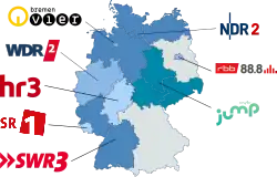 Lediglich die Jingels und Nachrichten stammen noch aus dem jeweiligen Sendegebiet. Verkehrsmeldungen werden bundesweit von SWR3 bereitgestellt. Ab 0 Uhr und damit zum Beginn der ARD-Popnacht kommt noch rbb 88.8 dazu.