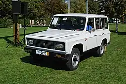Ab 1979 wurde zusätzlich der ARO-10 mit 1,3-l-Dacia-Motor gebaut. Dieses Fahrzeug war leichter und hatte eine kürzere Motorhaube.[9] Dieser fand sich auf der Leipziger Messe 1980 als ARO-104.[10]