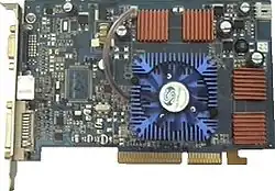 - Auch obliegt es den Herstellern, ob die finale Grafikkarte einen PCIe- oder einen AGP-Anschluss aufweist, denn GPUs mit nativer PCIe-Schnittstelle lassen sich mit Hilfe eines Brückenchips auch für AGP-Grafikkarten nutzen.