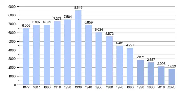 Die kontinuierliche Bevölkerungsrückgang in der zweiten Hälfte des 20. Jahrhunderts ist im Wesentlichen auf die Mechanisierung der Landwirtschaft und den damit einhergehenden Verlust an Arbeitsplätzen zurückzuführen.[4]