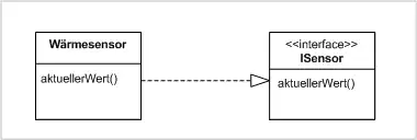 Graphisch wird eine Abhängigkeitsbeziehung als gestrichelte Linie mit einer offenen Pfeilspitze dargestellt. Die Pfeilspitze wird beim unabhängigen Element gezeichnet.