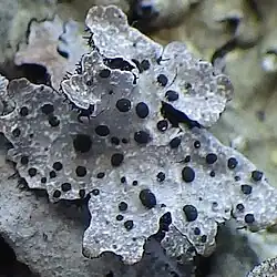 Abrothallus welwitschii auf der Flechte Sticta limbata | ||||||||||||