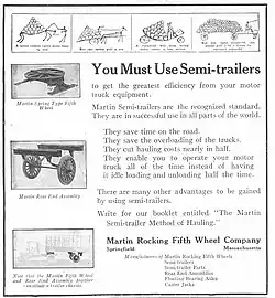 In den USA entwickelte man den schon bekannten Drehschemel zur Sattelkupplung (Fifth wheel coupling) weiter und entwickelte dabei das System der auswechselbaren Sattelauflieger (Semitrailer – Halbanhänger). Mit diesen war es nun möglich, das Zwei- bis Dreifache an Ladung zu transportieren und durch die Lastverteilung auf Antriebs- und Anhängerachse immer ausreichend Bodenhaftung für den Antrieb des Fahrzeugs zu haben. Die Möglichkeit, nur durch den Austausch eines günstig herstellbaren Anhängers einen Lkw (Sattelzugmaschine) für verschiedene Transportaufgaben einsetzen zu können, machte dieses System auf dem amerikanischen Kontinent schnell zum am weitesten verbreiteten Transportsystem auf der Straße.
