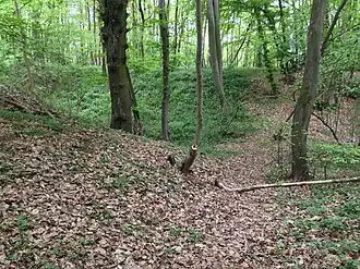 Von dem frühmittelalterlichen Abschnittswall zeugen noch Wall- und Grabenreste. Die Reste sind als Bodendenkmal eingestuft.