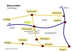 Römische Straßenverbindungen von Treis-Karden in Richtung Hunsrück und Eifel.