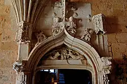Die Königspforte in der Nordwand ist die Verbindung zur Kirche. Sie stammt aus dem ausgehenden 15. Jahrhundert, ist reich gegliedert, wird gekrönt von einem Wappen mit Lilien (in der Revolution herausgehämmert) und ist umgeben von der Muschelkette des St. Michaelordens. Ein Wappen rechts, mit Hermelin der Bretagne, erinnert an die Königin Anne de Bretagne.