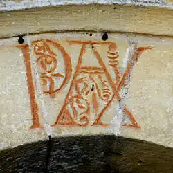 Unmittelbar darüber sind zwei kleine Okuli ausgespart, einer der nach Westen in das Langhaus weist, der andere nach Osten ins Freie, über dem First des Chors.