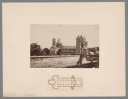 Foto der Abtei und Plan mit dem Ziborium (noch) im Westchor. Anonym (1860–1890), Sammlung Rijksmuseum Amsterdam