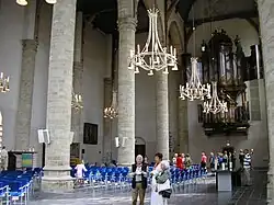 Sie besitzt ein einschiffiges Langhaus von sechs Jochen mit einem fünfseitigen Chorschluss. Nach dem Brand von 1568 wurde der Kirche das aufwändige Netzgewölbe hinzugefügt. Zwei weitere Joche nach Westen wurden vom Langhaus abgetrennt.
