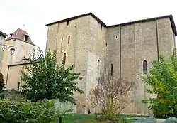 Der kantig, karg und streng wirkende Außenbau – Thorsten Droste spricht gar von „ungeschlachten Formen“ – mit seinen äußerst schmalen Fensteröffnungen ist sehr wahrscheinlich darauf zurückzuführen, dass die Abteikirche auch als Wehrkirche, d. h. als Ort der Zuflucht in Zeiten von Überfällen räuberischer Banden oder marodierender und plündernder Soldaten konzipiert war. Das Périgord ist jedenfalls reich an Wehrbauten (Burgen) und Wehrkirchen.