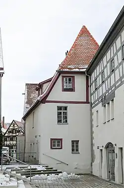 - ↑ a b Ehemaliger Scheunen- und Speicherbau, zum Neuen Rathaus gehörig, Bayerisches Landesamt für Denkmalpflege (PDF, abgerufen am 30. Juni 2023).