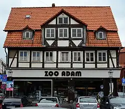 Der Gebäudekomplex Ackerhof 2–Langedammstraße 11 ist 2011 weitgehend unverändert erhalten. Im Erdgeschoss wurde aus den zwei Läden in den 1950er Jahren ein Geschäft gemacht. | |