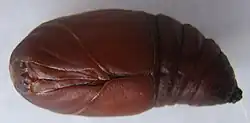 Die Eier sind weißlich, sind jedoch stark mit einer braunen klebenden Substanz versehen. Sie sind kleiner als die vieler anderer Arten der Familie. Die Weibchen legen ihre Eier einzeln oder in kleinen Gruppen an beiden Seiten der Blätter der Raupennahrungspflanzen ab. Nach durchschnittlich einer Woche schlüpfen die Raupen. sie durchleben fünf Stadien. Die Raupen leben als Einzelgänger und sind sesshaft. Erst für die Suche nach einem geeigneten Verpuppungsplatz gehen sie auf Wanderschaft. Sind die Tage während der späten Raupenstadien kürzer wird nach der Verpuppung eine Diapause ausgelöst. Die Verpuppung erfolgt in einem Kokon zwischen Pflanzenteilen nahe der Basis der Nahrungspflanze. In den unregelmäßigen kartonfarben braunen Kokon werden in der Regel auch Blätter eingesponnen. Er hat keine vorgegebene Sollbruchstelle für den Schlupf, ist aber schwach gebaut, wodurch die Falter mit Hilfe ihrer chitinisierten Dornen am Thorax leichter schlüpfen können.[1]