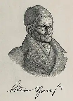 - ↑ „Todesanzeige. Den _ starb unser Vater, der Buchbindermeister Adam Henß, im _ Jahre seines Alters. Er wurde auf sein Verlangen in aller Stille begraben und ihm kein Leichenstein gesetzt. Vor seinem Ende erfreute er sich noch des fröhlichen Gedeihens der apostolisch-katholischen Kirche, in deren Wachsthum er eine kräftige Bürgschaft der geistigen Freyheit unsers Vaterlandes erblickte. Wir verbitten uns alle Beyleidsbezeigungen.“