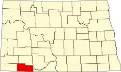 Das County liegt im Südwesten von North Dakota, grenzt im Süden an South Dakota und hat eine Fläche von 2561 Quadratkilometern, wovon 2 Quadratkilometer Wasserfläche sind. Es grenzt im Uhrzeigersinn an folgende Countys: Hettinger County, Grant County, Sioux County, Perkins County (South Dakota), Harding County (South Dakota), Bowman County und Slope County.