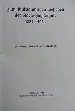 - Martha Heltmann-Capesius (Hrsg.): Zum fünfzigjährigen Bestehen der Adele-Zay-Schule 1834–1934, Kronstadt 1934