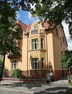 Die verputzte Villa wurde 1905 nach Plänen von C. Lorenz für den Tischlermeister Wilhelm Raabe als nördlichste Bebauung der Adelheidstraße errichtet. Zur Straße hin befindet sich an der südlichen Haushälfte ein historistischer Erker in Fachwerkbauweise. Nördlich hiervon wurde ein Standerker an die straßenseitige Fassade angefügt. Er ist in Formen des Jugendstils mit floralen Elementen verziert.