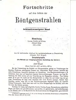 - ↑ Adolf Bingel: Encephalographie, eine Methode zur röntgenographischen Darstellung des Gehirns. In: Fortschritte auf dem Gebiet der Röntgenstrahlen. Band 28, 1921, S. 205–217.