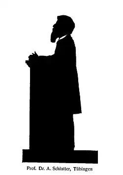 - ↑ So Schlatter selbst gegenüber seinem Freund Wilhelm Lütgert: Werner Neuer: Adolf Schlatter. Ein Leben für Theologie und Kirche, 1996, S. 753f.