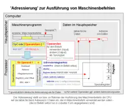 Die verschiedenen Adressierungsarten sind ein Aspekt des Prozessordesigns. Sie sind innerhalb einer gegebenen Befehlssatzarchitektur definiert und bestimmen, wie für jede Instruktion der Maschinensprache die tatsächliche (physische) Speicheradresse ihrer Operanden ermittelt/errechnet wird, zum Beispiel mithilfe der Informationen, die in Registern gespeichert sind und/oder Konstanten innerhalb des Maschinenbefehls.