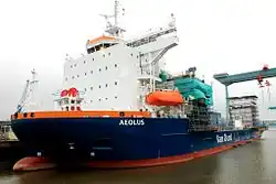 Die Aeolus ist ein Errichterschiff des niederländischen Unternehmens Van Oord. Das Schiff des Typs 187 wurde auf der Hamburger Sietas-Werft gebaut. Die Fertigstellung mit der Ausrüstung der vier 87 Meter langen Hubbeine aus Stahl erfolgte bis Juli 2014 bei der Lloyd-Werft in Bremerhaven.[1] Bei dem Schiff handelt es sich um das erste und einzige auf einer deutschen Werft gebaute Errichterschiff für den Bau von Offshore-Windparks.[2][3]