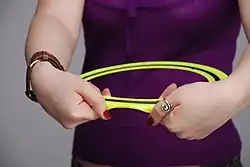Ein Aerobie ist ein Sport- und Freizeitgerät, das auf ähnliche Weise wie ein Frisbee geworfen wird. Das Aerobie ist allerdings ring- und nicht scheibenförmig. Ein weiteres Unterscheidungsmerkmal zum Frisbee ist seine geringere Masse und der stabilere Flug.[1] Zur Optimierung des Flugverhaltens kann das Aerobie leicht verbogen werden.[2] Aufgrund seines sehr geringen Luftwiderstandes und des stabilen Flugverhaltens kann es sehr viel weiter als ein Frisbee geworfen werden. Der Ring ist nur ca. 3 mm dick.[3]