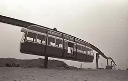 Der Aerobus ist eine Erfindung des Schweizers Gerhard Müller, die von der Firma Aerobus International, Inc vermarktet wurde. Die erste Versuchsanlage wurde 1970 in der Schweiz in Schmerikon am Zürichsee bei der Mündung des Linthkanals gebaut und 1975 nach Kanada verkauft, wo sie bis 1992 im Skigebiet Mont Sainte-Anne in der Provinz Québec als Zubringerbahn zu einem Skilift in Betrieb war.[2] 1973 wurde in Dietlikon eine zweite Strecke gebaut, um Kurven und Weichen zu testen.[3] Sie diente auch zur Erprobung der zweiten bestellten Anlage, die im Skigebiet Mount Snow in Vermont einen Parkplatz mit einem Hotel verbinden sollte,[4] jedoch aufgrund des wirtschaftlichen Zusammenbruchs in den 1970er Jahren nicht realisiert wurde, da der Initiator Walt Schoenknecht das Skigebiet verkaufte. Für das Skigebiet Denali in Alaska plante er eine autofreie Stadt nach Schweizer Vorbild mit einem Aerobus-System für den öffentlichen Nahverkehr. Das Projekt wurde nicht realisiert.[5] 1981 wurde die Anlage in Dietlikon erneuert, die Bahn war 840 m lang.[6] Kurz nach Aufnahme des Testbetriebes auf der erneuerten Strecke ereignete sich ein kleiner Unfall, als das Testfahrzeug über das Ende der Strecke hinausfuhr.[7]