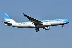 Im August 2013 übernahm Aerolineas Argentinas ihre ersten Airbus A330-200, die bis August 2014 die alten A340-200 ersetzten.[9] Im Zuge dessen wurde nach über fünfjähriger Unterbrechung ab Dezember 2013 wieder New York City angeflogen.[10]