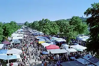 Umrahmt werden diese Veranstaltungen von einem weitläufigen afrikanisch gefärbten Basar, in dem in Zelten afrikanische Musikinstrumente, CDs, antiker Schmuck, farbenprächtige Gewänder und europäisierte afrikanische Speisen angeboten werden.