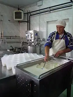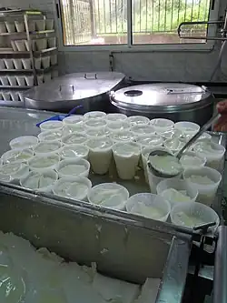 Die drei anderen Varianten werden gerührt. Dazu wird der Käsebruch in großen Behältern 24 Stunden lang auf Gaze abtropfen gelassen. Anschließend wird die Masse in einem Rührkessel mit Salz und gegebenenfalls Paprika vermischt. Die kegelstumpfförmigen Käse mit Paprika werden in konische Formen gefüllt, die kürbisförmigen in oben zusammengeschnürte Leinenbeutel gefüllt. Darin tropfen die Käse weitere 24 Stunden ab.[1][5]