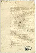 Die Ankunft der Schiffe teilt mir mit, dass Sie, Monsieur le Gouverneur und Monsieur de Beauharnois um einen Bericht über den Erfolg meiner Unternehmungen bitten. Diese Erklärung, Monsignore, veranlasst mich, mir die Freiheit zu nehmen, Eure Hoheit selbst davon in Kenntnis zu setzen. Da ich genau weiß, wie sehr Sie sich um das Land kümmern, schmeichelt es mir, dass Sie diese Einzelheit tolerieren und es gut finden, dass ich aus eigener Initiative eine Fabrik für Segeltuch, Drogeriestoff, gekreuzten und gedeckten Serge aufgebaut habe. Zu diesem Zweck, Monseigneur, habe ich auf eigene Kosten neun Engländer aus den Händen der Wilden befreit. Ich ließ sie arbeiten und brachte sie in komfortable Unterkünfte.“[2]