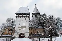 Im Mittelalter wurde die später evangelische Kirchenburg von den sächsischen Siedlern gebaut, um den wiederholten Überfällen durch osmanische Heere trotzen zu können. Die heutige Form des wichtigsten erhaltenen Baudenkmals, welches sich im Zentrum des Ortes befindet, stammt aus dem Jahre 1560. Allerdings wurden die Ringmauern im 19. Jahrhundert niedergerissen. Ende des 18. Jahrhunderts wurde die erste rumänisch-orthodoxe Kirche auf einem Berg am Rande der Stadt errichtet.