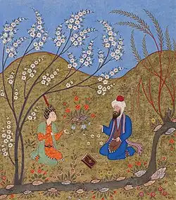 "Der Mystiker Ahmad Ghazali im Gespräch mit einem Schüler", persische Miniatur aus dem Manuskript "Majalis al-Ushshaq" ("Begegnungen der Liebenden"), 1552. Bodleian Library MS. Ouseley Add. 24, f. 42a
