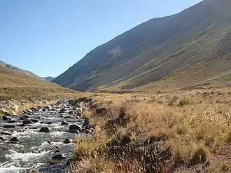 | Quelle | südwestlich des Notch Pass und km ostsüdöstlich des Mount Huxley 44° 4′ 57″ S, 169° 41′ 50″ O | |