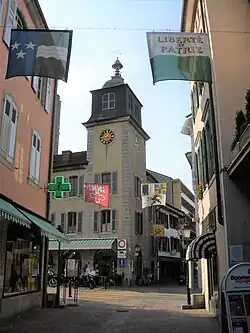 Aigle (deutsch veraltet Aelen, im einheimischen frankoprovenzalischen Dialekt [])[6] ist eine politische Gemeinde im Kanton Waadt, Schweiz, und Hauptort des gleichnamigen Distrikts Aigle. Der deutsche Name Aelen wird heute nicht mehr verwendet. Die Einwohner werden auf Französisch Les Aiglons genannt. Die Adler im redenden Gemeindewappen sind in der Homonymie des Ortsnamens zu frz. aigle ‹Adler› begründet.