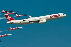 Die Schweizer Luftwaffe beteiligte sich bei diversen militärischen und zivilen Veranstaltungen mit Vorführungen. Bei vom Militär organisierten Events waren in der Regel keine ausländischen Militärflugzeuge eingeladen. Grund war die strikte Schweizer Neutralität. Zivile Flugshow-Organisatoren hingegen brachten auch ausländische Militärflugzeuge in ihr Programm ein, wie mehrfach die Harrier bei den ab 1976 stattfindenden Flugtagen in Bex. Mit dem Ende des Kalten Krieges ergingen auch Einladungen der Schweizer Luftwaffe an Staaten des ehemaligen Ostblocks. An der Air94 am 26. und 27. August 1994 war eine Su-22 der slowakischen Luftwaffe auf dem Flugplatz Buochs zu Gast, wo die Patrouille Suisse ihr 30-jähriges Bestehen auf dem Hawker Hunter feierte. Höhepunkt sowie Anlass der Veranstaltung war die Verabschiedung des Hunters mit einem Formationsüberflug von 40 Hawker-Hunter-Maschinen.[1] Es wurde beschlossen, alle zehn Jahre eine solche Airshow durchzuführen. Die nächste Airshow fand daher als Air04 am 4. und 5. September 2004[2] auf dem Militärflugplatz Payerne statt. Rund 275'000 Menschen verfolgten das militärische Spektakel mit 186 Flugzeugen, dessen Höhepunkt ein ungewöhnlicher gemeinsamer Überflug von fünf Kunstflugstaffeln war.[3] Der Direktor der Air04 war Ian Logan.