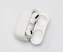 Die AirPods Pro sind kabellose Bluetooth-Kopfhörer mit aktiver Geräuschunterdrückung des US-amerikanischen Unternehmens Apple.[1] Sie stellen die High-End-Variante der AirPods dar und wurden am 28. Oktober 2019 angekündigt und am 30. Oktober 2019 zu einer unverbindlichen Preisempfehlung (UVP) von 279,00 Euro[2] auf den Markt gebracht.[3] Als System-on-a-Chip (SoC) kommt Apples hauseigener Apple H1 zum Einsatz.
