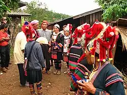- – das Opfern von Tieren: Dabei wird einem Wasserbüffel ein angespitzter Holzpfahl in den Hals gerammt, um ihn zu töten. Anschließend wird er mit Macheten geschlachtet und von den Dorfbewohnern verspeist. Dazu wird viel Whiskey getrunken.