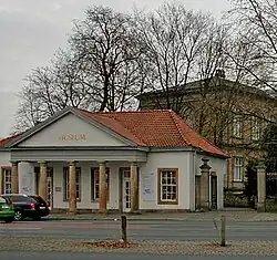 Das um 1817 im klassizistischen Stil erbaute Akzisehaus ist das letzte erhaltene Zollhaus in Osnabrück. Es wurde errichtet, als man die engen Tore zwischen den Wallanlagen und Mauern niedergerissen hatte. Bis Mitte des 19. Jahrhunderts wurde hier die sogenannte Akzise, eine Steuer auf Verbrauchsgüter wie Wein, Bier, Mehl oder auch Korn, erhoben.[1] Diese Akzise war damals für die Stadt neben den Erträgen des Steinkohlenbergbaus im Piesberg eine der wichtigsten Einnahmequellen. Zeitweise war hier auch eine Wache untergebracht. Seit 1894 hatte die Post eine Zweigstelle eingerichtet, die noch bis 1972 bestanden hat. So wird dieses Gebäude heute noch häufig als kleine Post bezeichnet.[2][3] Anschließend wurde hier bis vor wenigen Jahren Kunst präsentiert. Schwerpunkte waren dabei die Kunst des 20. Jahrhunderts und die Reihe Osnabrücker Kunst und Künstler.