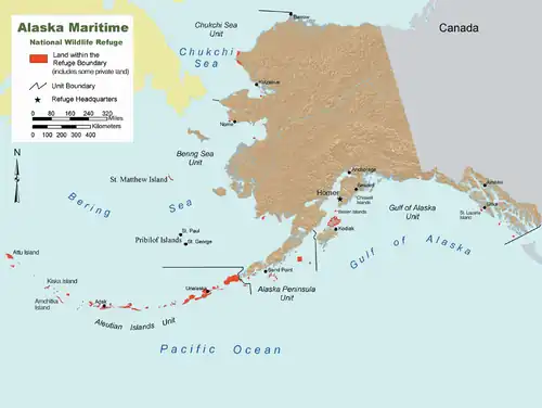 Das Alaska Maritime National Wildlife Refuge ist in fünf Units, geographische Bereiche, eingeteilt: