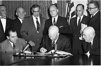 (Dwight D. Eisenhower, sitzend, und der damalige Vizepräsident Richard Nixon, links)