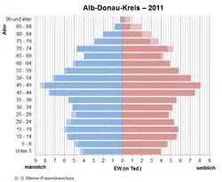 - ↑ Datenbank Zensus 2011, Alb-Donau-Kreis, Alter + Geschlecht