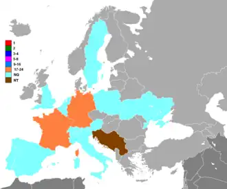 | 2012 | Polen und Ukraine | nicht qualifiziert | in der Qualifikation an Frankreich und Bosnien und Herzegowina gescheitert, das sich aber auch nicht qualifizieren konnte | |||