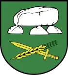Blasonierung: „In Grün unter einem aus drei Tragsteinen und einer Deckplatte bestehenden silbernen Steingrab schräg gekreuzt eine goldene Ähre und ein aufrechtes goldenes Schwert.“[15]