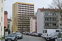 Der städtebauliche Entwurf folgte dem Leitbild der durchgrünten und aufgelockerten Stadt. Die fächerförmig angeordneten, leicht versetzten, viergeschossigen Zeilenbauten sind von großzügigen Grünflächen umgeben. Sie bilden den Rand der Siedlung und deren Grünflächen den Übergang zu den angrenzenden Freiflächen. Die zweigeschossigen Einfamilien-Reihenhäuser liegen im Innern der Siedlung und vermitteln zur bestehenden älteren Bebauung mit Doppelhäusern. Ein Hochhaus mit dreizehn Geschossen wurde als städtebaulicher Akzent am östlichen Rand der Siedlung errichtet.